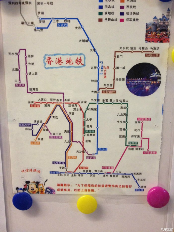 香港地铁线路图,我从福田口岸过境,做落马洲地铁到九龙塘,换乘观塘线到旺角开始暴走的(游记中的地铁线路图均来自好望角青年旅舍墙上贴着的,我用手机照下来的,青旅里还有地图八达通卡香港one2free电话卡买,很方便实用)