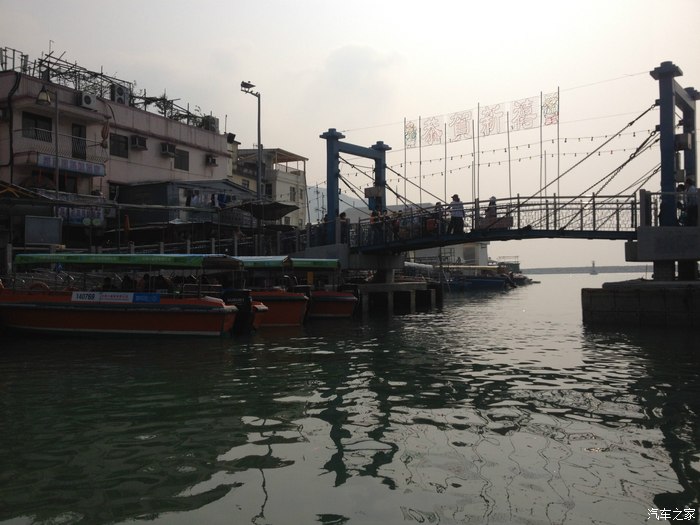 这个桥附近有很多渔船坐观光整个大澳渔村,还会带你到港湾外看港珠澳大桥和海豚时长有半个小时左右,票价20港币,真的很超值,在海上看到一对一对的海豚那种感觉很神奇!