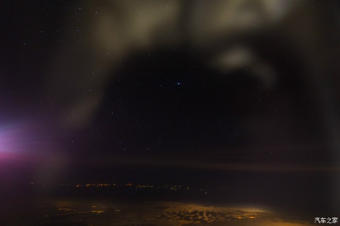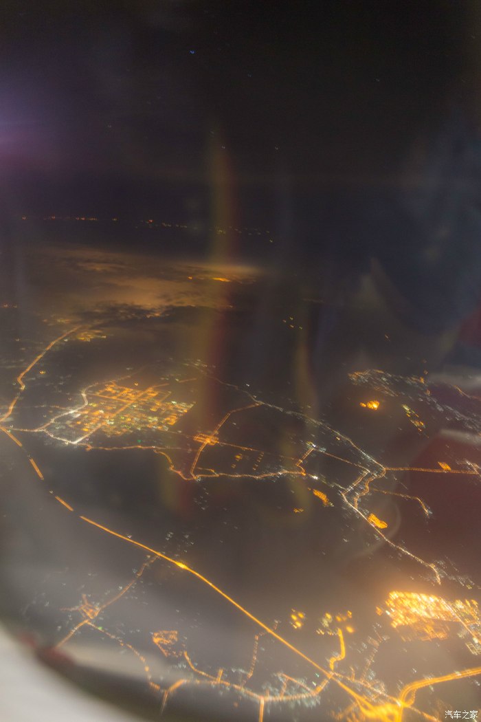 一大片光斑出行在下方,明显不是城市,没有街道,没有别的颜色的灯光。
