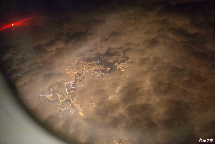 云层还是很厚,但是已经被下面城市的灯光打亮!真的异常壮观!