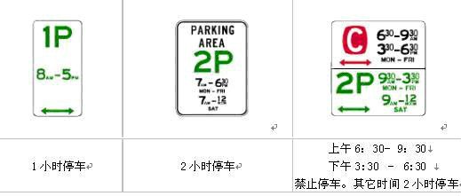 澳洲市区的停车场很多有停车时间限制,如1/4P(15分钟)、1/2P(半小时)、1P(1小时)、2P(2小时)、3P、4P等等,P前面的数字表示停车时长限制的小时数。在同一个停车区不同车位的时长限制也可能不同,例如停车场的标志牌上一半写着1P,另一半写着2P和残疾人轮椅的符号,表示这个停车场的普通车位的停车时限是1小时,残疾人专用车位停车时限是2小时。不管是收费停车还是免费停车,一次停车或交费都不能超出停车牌上标示的时长限制。当停车需要超过限制的时长时,到钟后需要及时交钱续费。例如在1P停车场停车1.5小时,只能先交1小时的停车费,因为收费机是按停车场的收费规则设计的,1小时后再去收费机交0.5小时的停车费,如果没有及时续费就有可能被罚。如果停车场是1P免费的,同样也要遵守一次停车时长不能超过1小时的规则,否则也可能要吃罚单。要解决继续免费停车其实也很简单,对于封闭式管理的免费停车场,需要刷停车票把车开出停车场,然后再重新取票进入停车场;对于开放式免费停车场,则可以通过移动车辆位置解决。