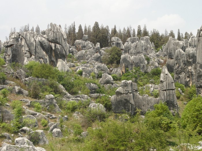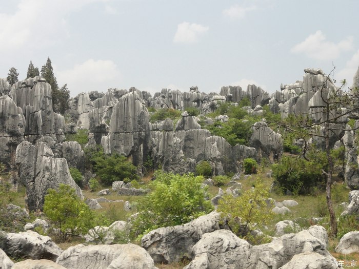 大石林整个景区由密集的石峰组成,有如一片石盆地。