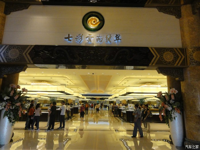 途经“七彩云南”,旅游车停下,请游客游览购物。