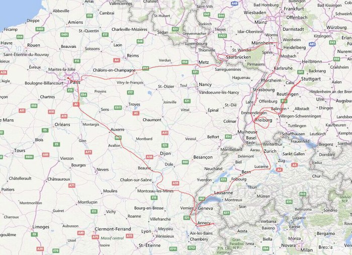 这次自驾路线首先从巴黎开始,开上Chamonix,下山到Annecy, 到日内瓦,再经过琉森,到德国境内Freibourg, 在黑森林地区玩一下,再到斯图加特,在巴登巴登泡个温泉,去海德堡,在Metz住一晚上,然后最后回到巴黎。