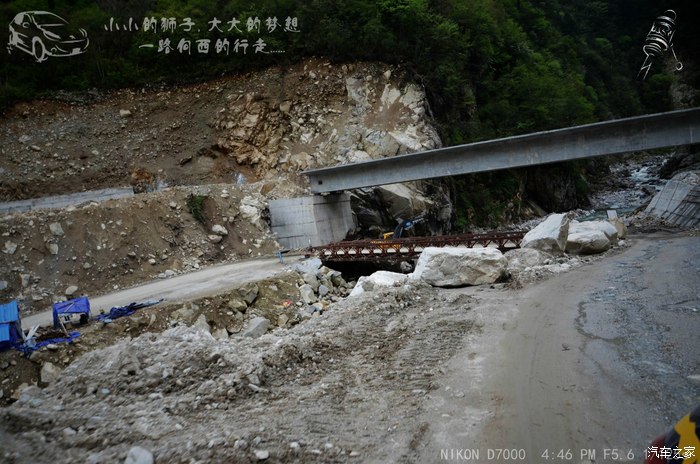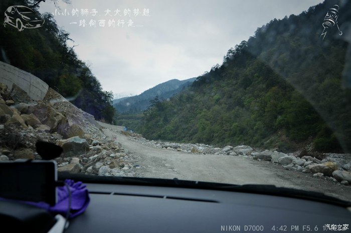出了海螺沟,有一小段修路,改道走河道,不要奇怪,四川很多地方修路的时候都改走河道,我是山区驾驶员,我习惯了