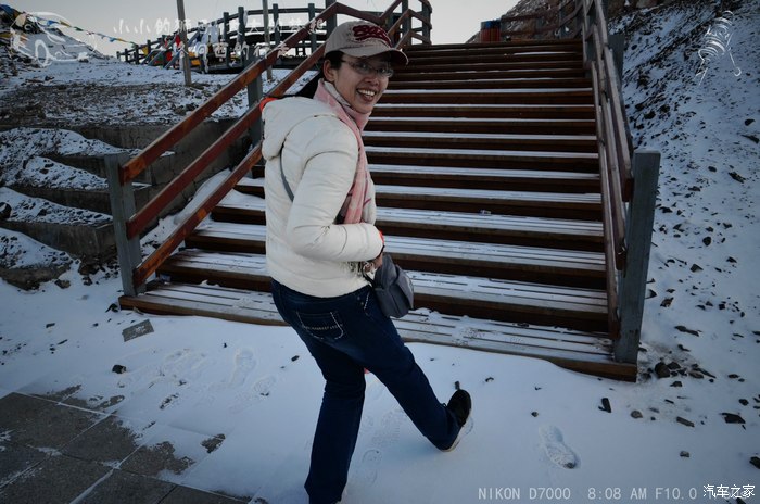 雅加梗快到山顶,雪开始大量出现了,赶快加衣服