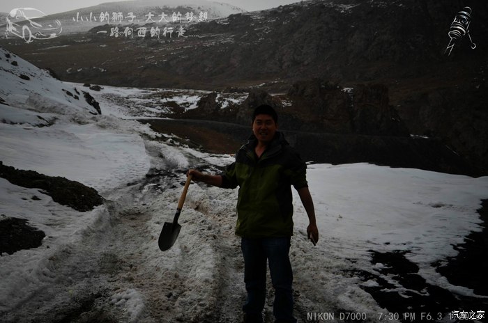 最艰难的一百米,我穿防滑链,老婆拿个铲平路,。。。启动,冲坡,打滑,防滑链掉了,再铲路,再穿防滑链,再冲。终于,在折腾了近一个小时个,我把车从背后那个地方开过来了。拍一张留作记念,本来老婆也照了一张,她嫌当时的样子太过狼狈,给删了不让发,呵呵。