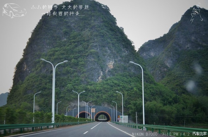 广西的隧道很有特点,都贴了拱形的反光标,车灯一照很是漂亮