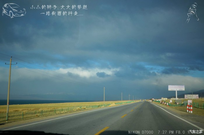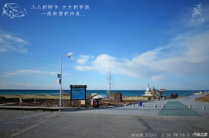 到达青海湖边上了,右转是刚察,这是我们原本计划要去的地方,经过刚察到达察卡盐湖,后来临时决定向左转,到沙岛去看看就行了。