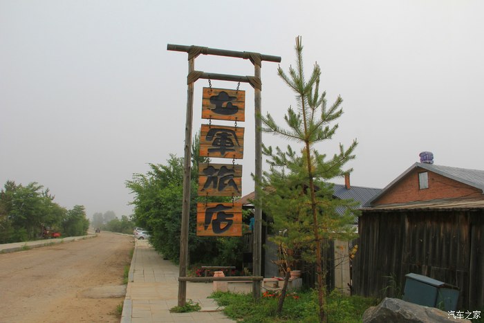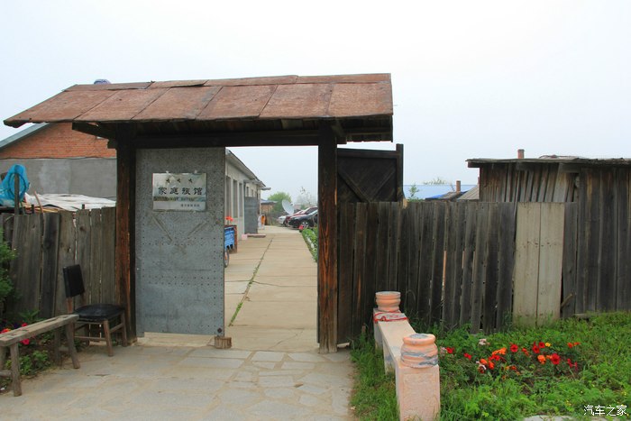 这是旅店的大门。门上挂着漠河县旅游局颁发的三星家庭旅馆。