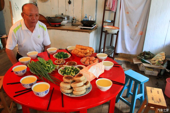 7点,早餐的时间到了,到后院“餐厅”吃早餐。