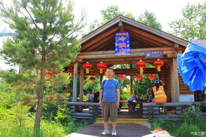 在中国最北冷饮店前拍照留影。