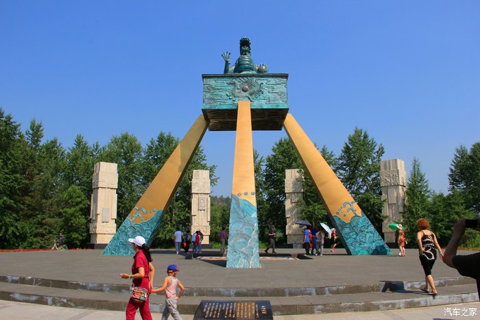 去金鸡之冠景点。金鸡之冠铭文曰:“中华古国,文明之邦。***疆域,雄鸡高昂。极冠之顶,蕴育熙光。黑水右岸,龙玺一方。冠上加冠,聚福纳祥。置文昌六星之位,耀神州北极辉煌。蟠龙傲视天宇,筑玺永识边墙。五行北地属水,固有四栋雕梁,擎起瑞祥礼器,佑我华夏用昌。玺边一十八尺,堪称 印之王。阴文篆刻,金鸡之冠。天道地德,朱红印章。侧立青龙白虎朱雀玄武,盛赞人文史传神奇天象。祭玺传国,起于始皇。汉唐宋以谋大统,元明清以纪朝纲。已丑坤日,再现福地龙江。彰显国威浩荡,边塞固若金汤。托玺之名,达喜之意。竭程拜谒,舛运呈祥。仕途通达,任君徜徉。”