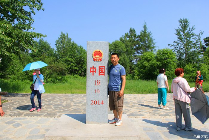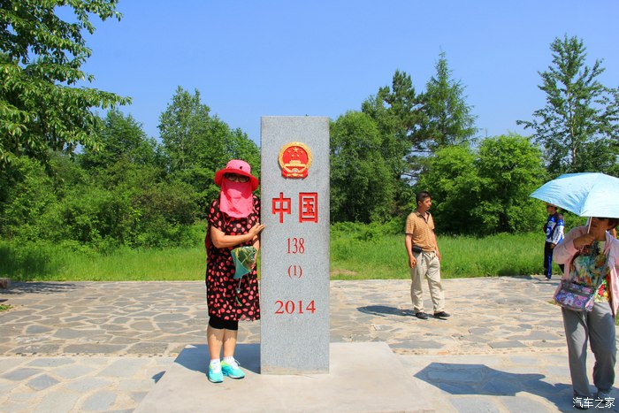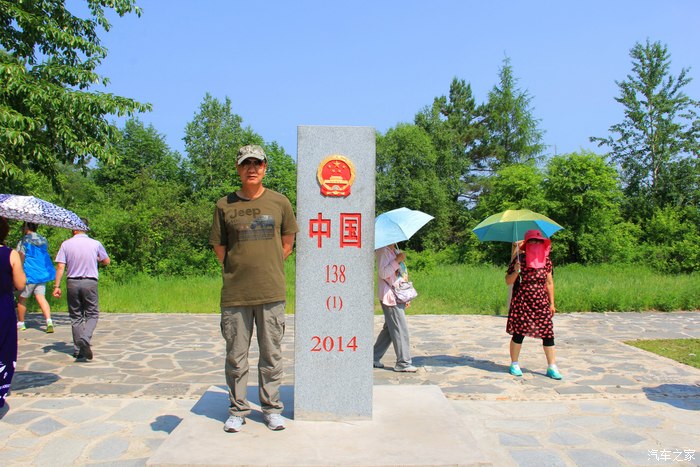 与界碑合影。