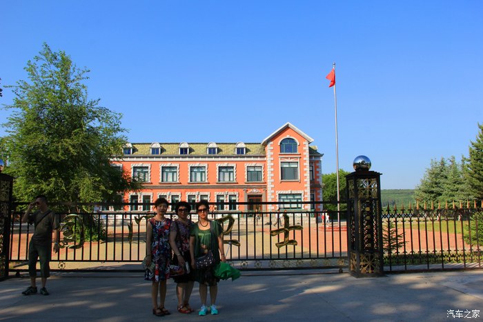 不能进院,在门前合影。
