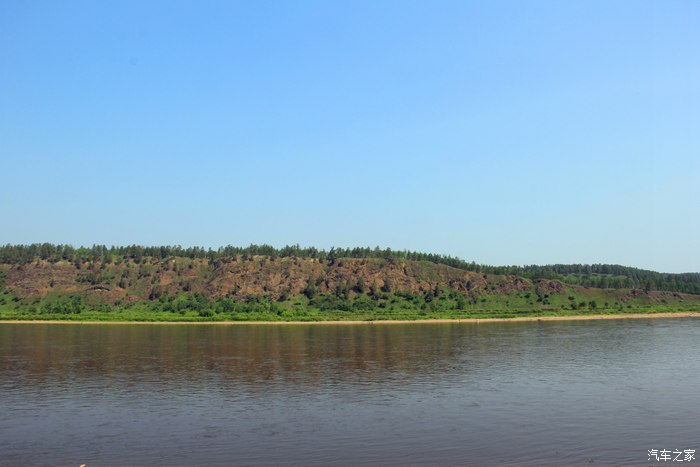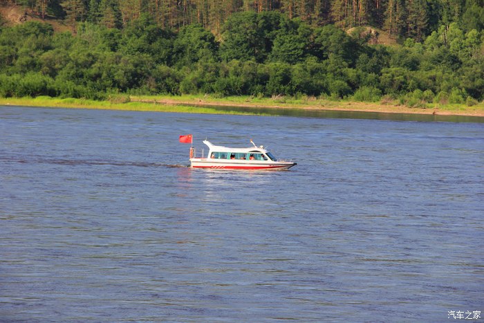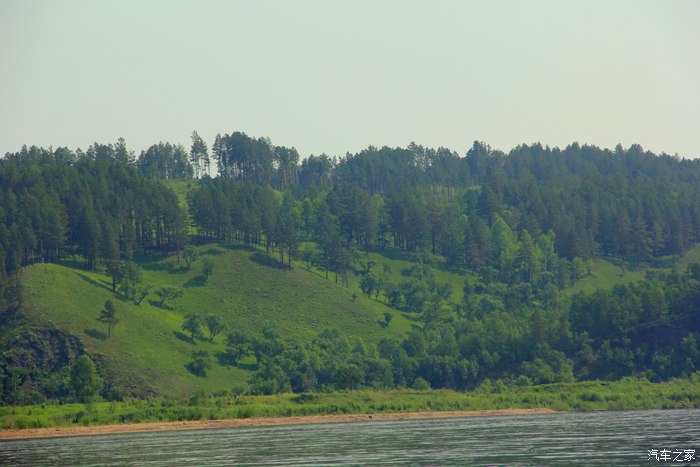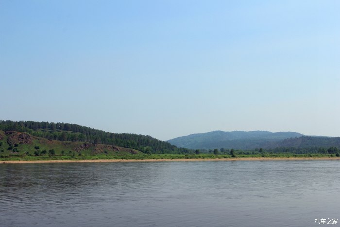 江面不宽,对面俄罗斯的山林清晰可见。
