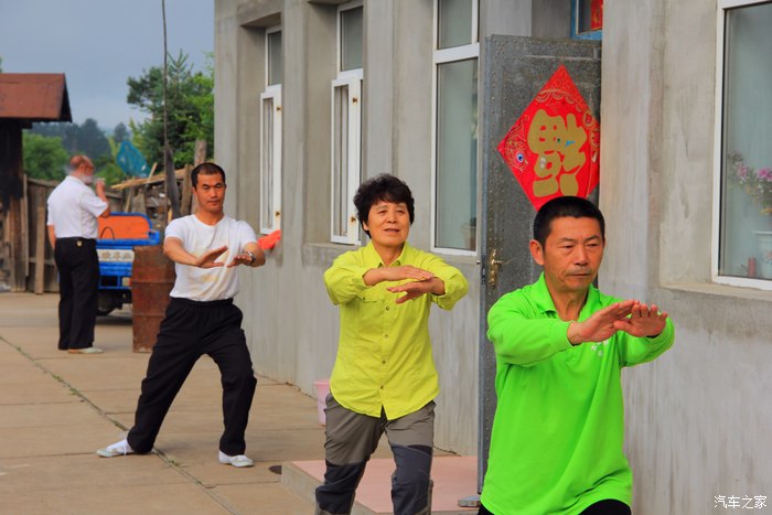 弟弟和老王在打拳,老伴也加入。