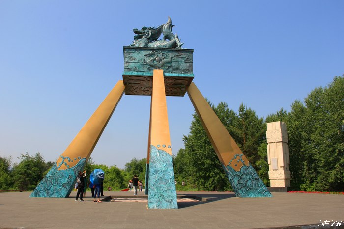 立在金鸡之冠广场旁的中俄国界138号碑,后面隔着树的外面就是黑龙江边。