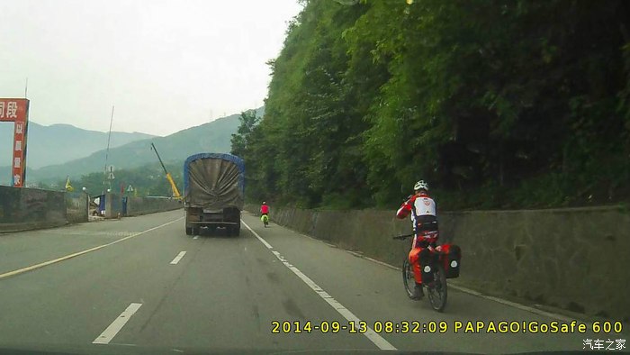 进入318国道即看到骑行者,车神看到后缓缓的说:这TM就是以后的我。(行车记录仪拍摄)