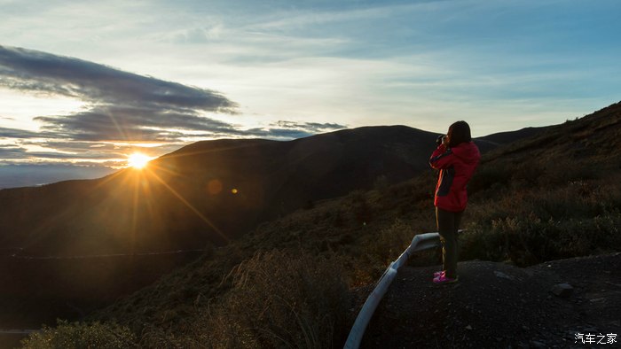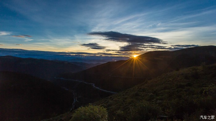 天气晴朗,7点10分,通过海拔4412米的高尔寺山垭口,美丽的朝阳缓缓升起。