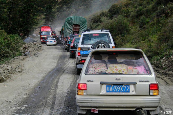 中午12点到达二郎山隧道前20公里,前方因为修路开始堵车,仅单向放行,20公里走了4小时。