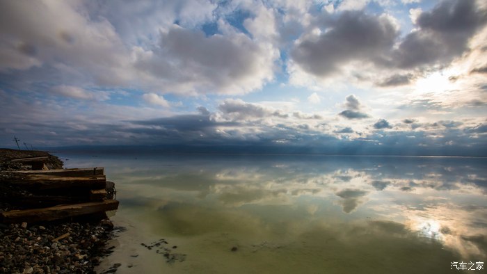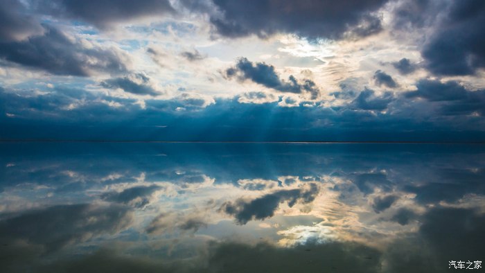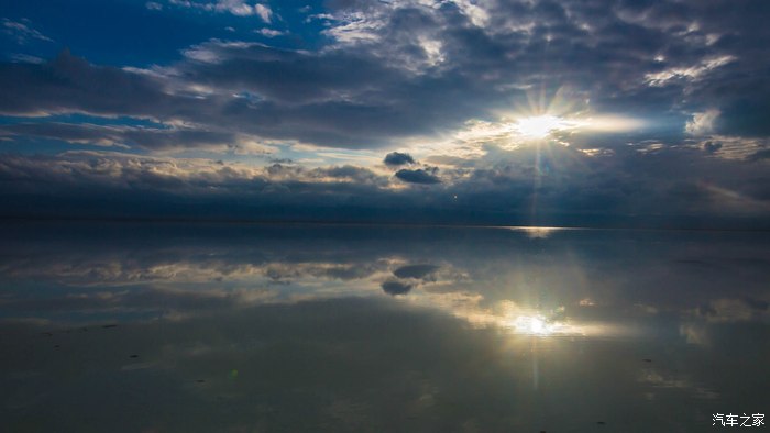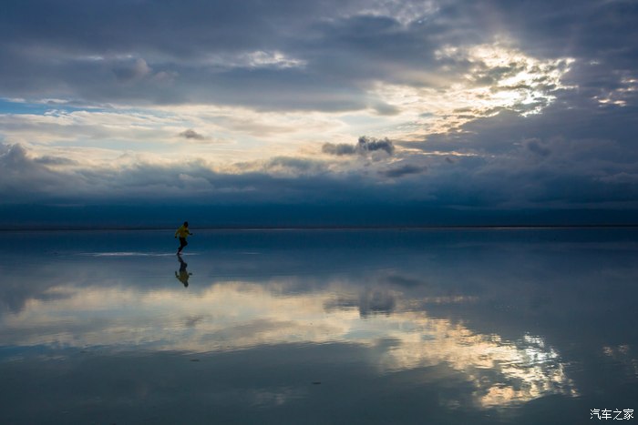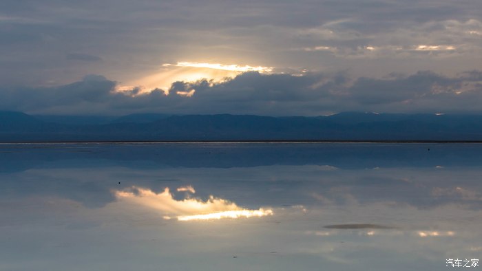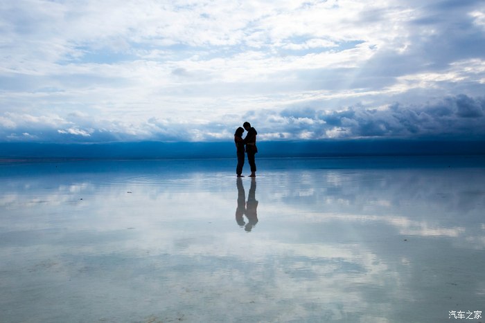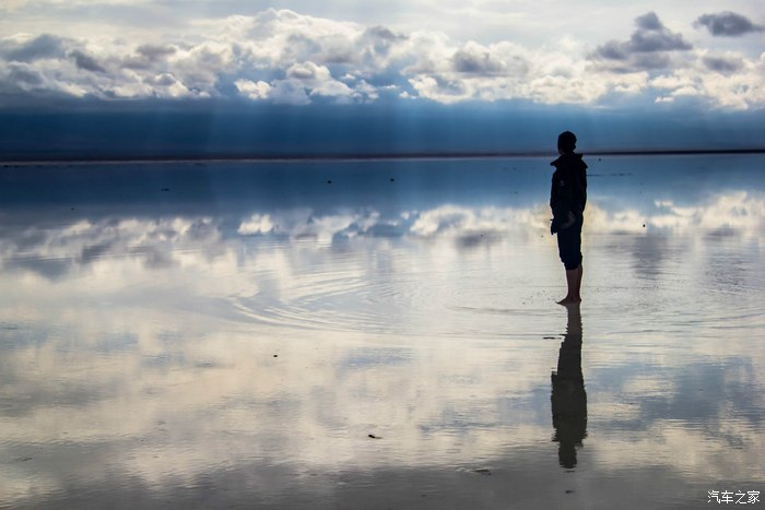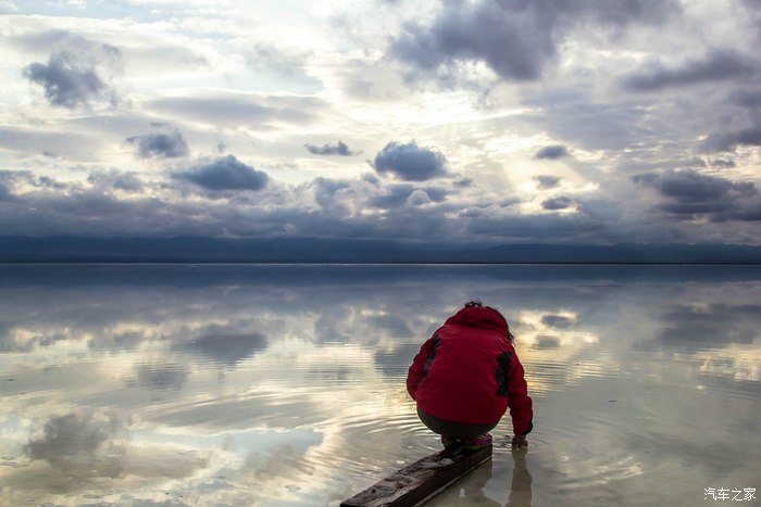有“天空之镜”之称的茶卡盐湖,初到时还下着小雨,云层很厚。
