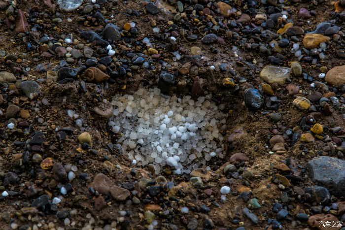 在暴雨中行驶的情景,石子大小的冰雹外加闪电,首席摄影师吓得话都不会说了。其实最怕的是在这样的旷野中车被闪电击中。
