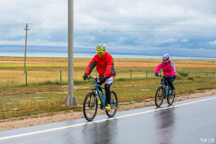 环湖骑行的人们风雨无阻。