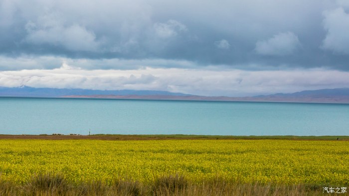 湖岸边满满的油菜花田是青海湖的特色。