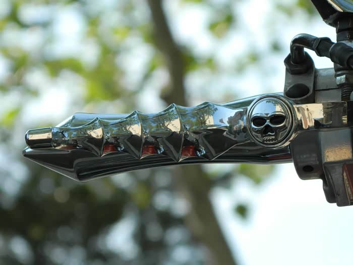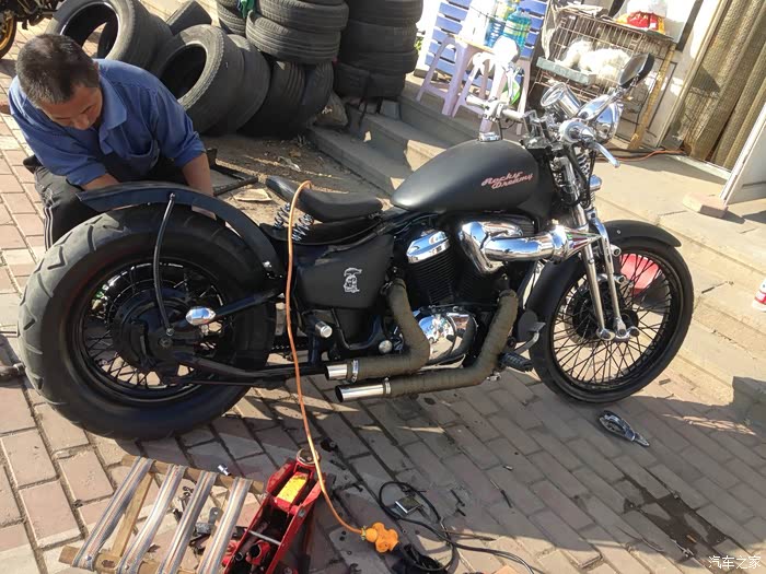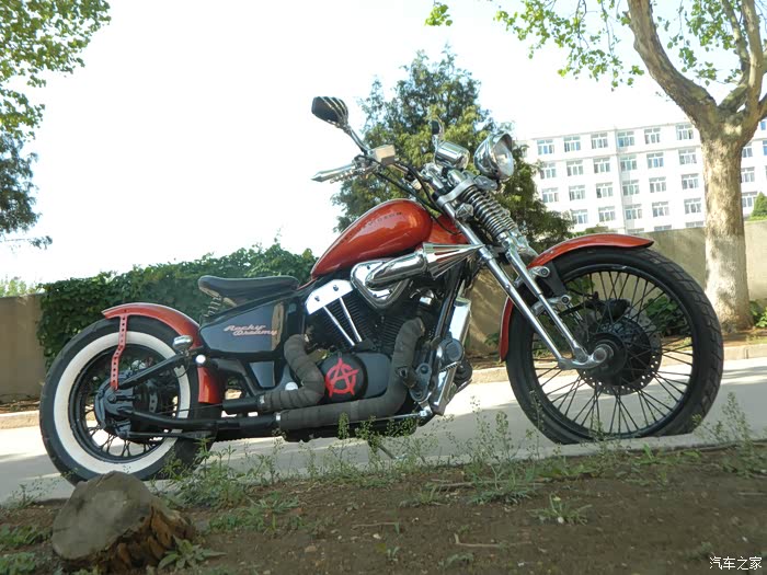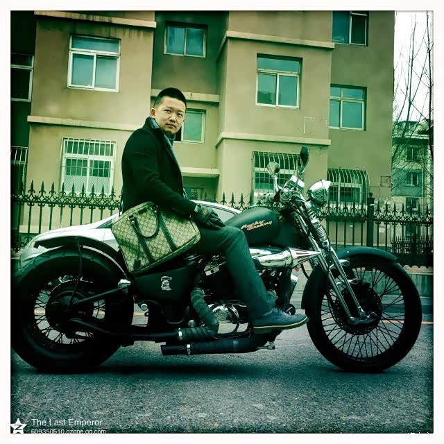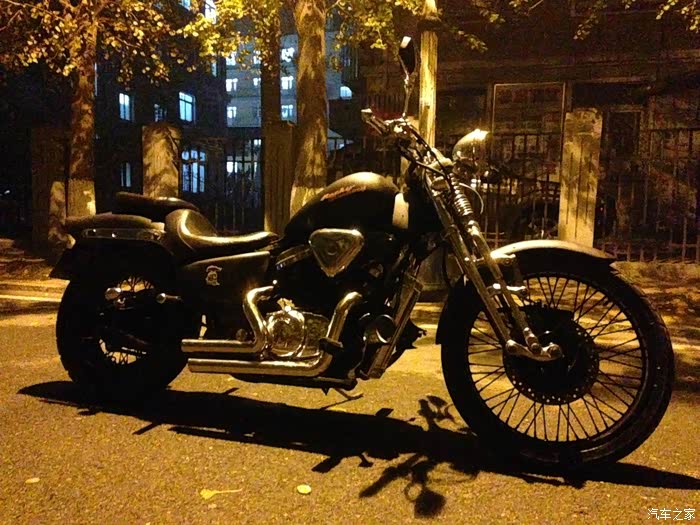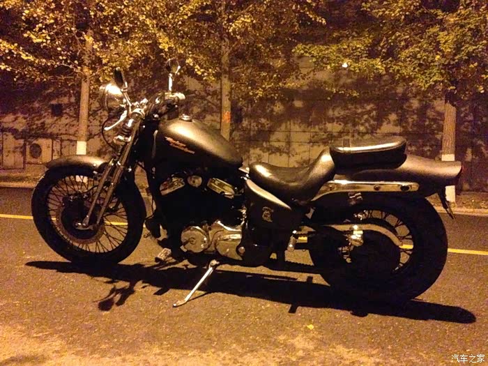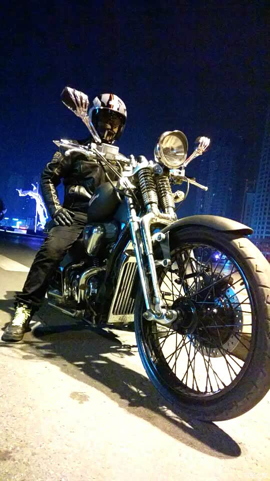 )这张照片是黑色车漆的最后留影,当时已经换上了新的后泥瓦,加了轮胎白片,装上了筷子盖,骷髅牛角,鹰头上泵盖,换了个17cm的小高把,排气也被喷黑了