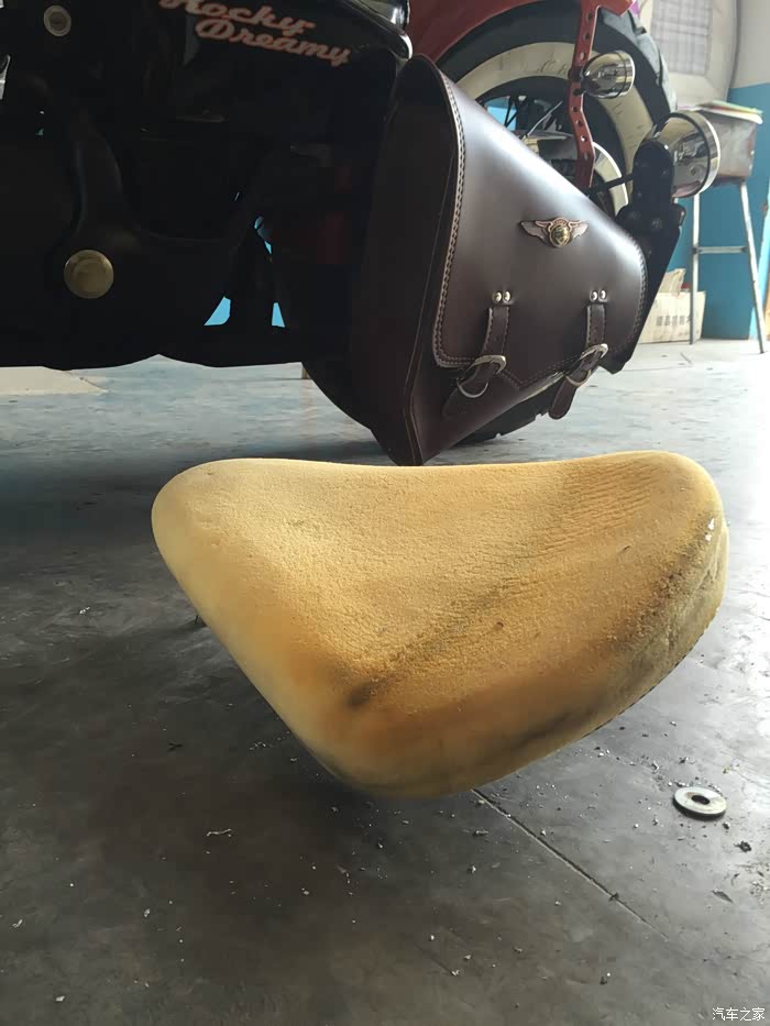 今天给车座包了个棕色皮子。本来有从网上买的疯马皮,挺好看的,但是前期会掉色,用一段时间摩擦多了才会好。我可不想拿裤子当牺牲品,纠结思索良久还是在我们这里一家座椅包皮店里用了普通的人造革。
