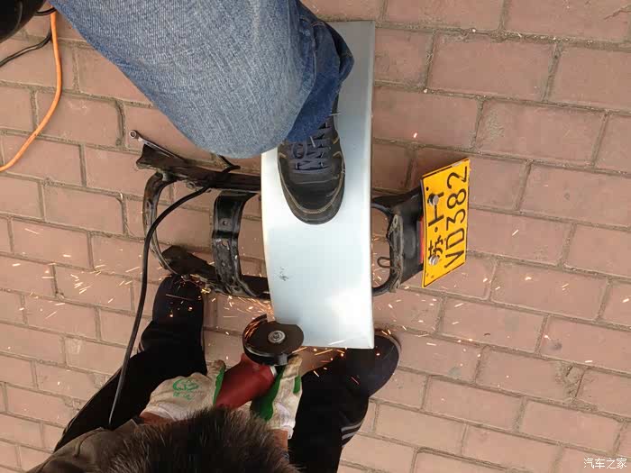 会飞大叔在帮我切割车架。为什么叫他会飞大叔呢?因为目前还没有发现他不会的事情,从各种手工技能到诗词歌赋,样样精通,简直就是超人,让我们佩服的五体投地。所以我和我的小伙伴们给他起了这么个外号