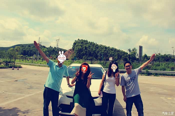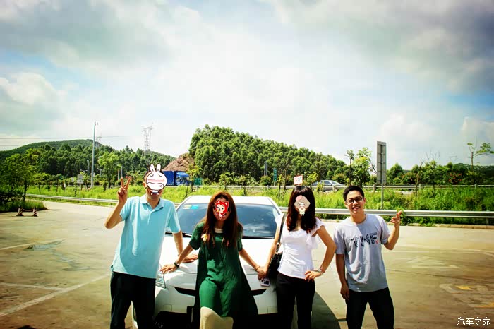 进入第一个服务区才想起来一起来个合照,从左到右:钊哥、欢欢、杏子、本人