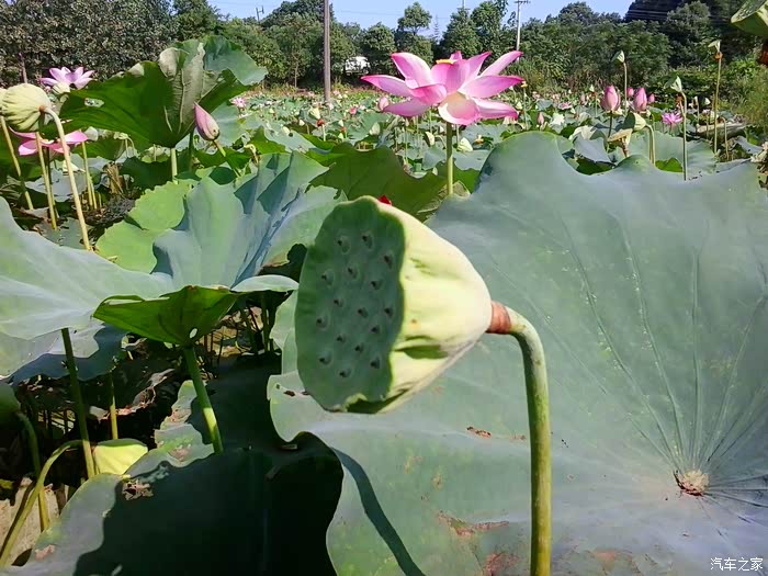 ↑ 在去安义古村的路上看到马路两侧都是盛开的荷花,于是我们停车去看看
