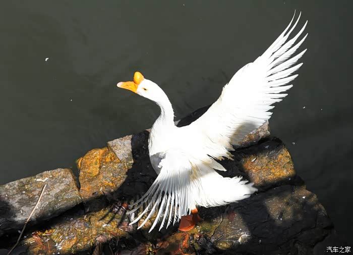 叫了声:鹅!它就很专业的展翅咯O(∩_∩)O~