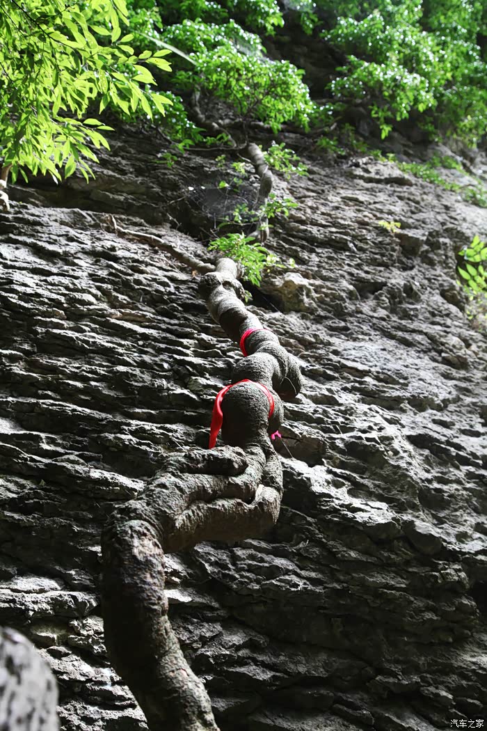 老藤扎根岩峰 枝叶覆盖岩面