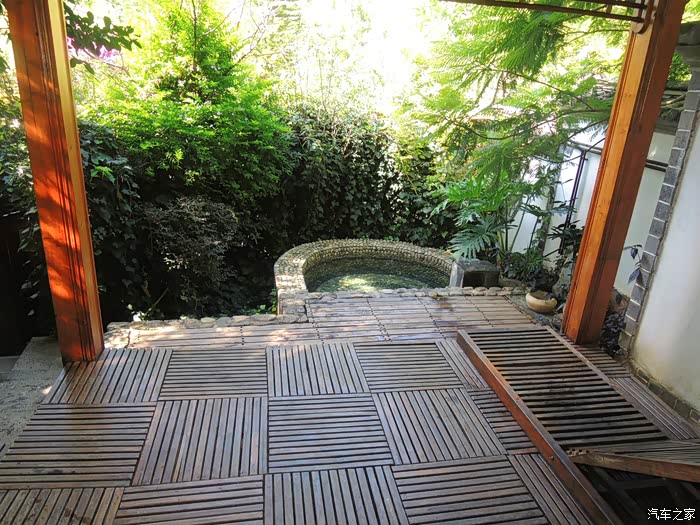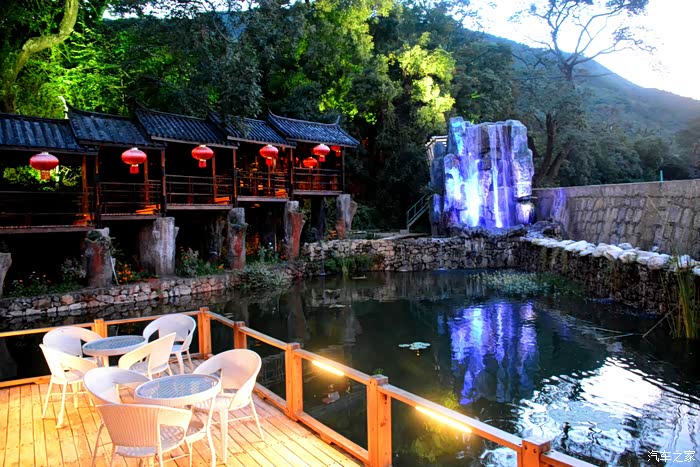 到服务台定房间、小木屋别墅代泡池的优惠价580元一间、也真够贵的