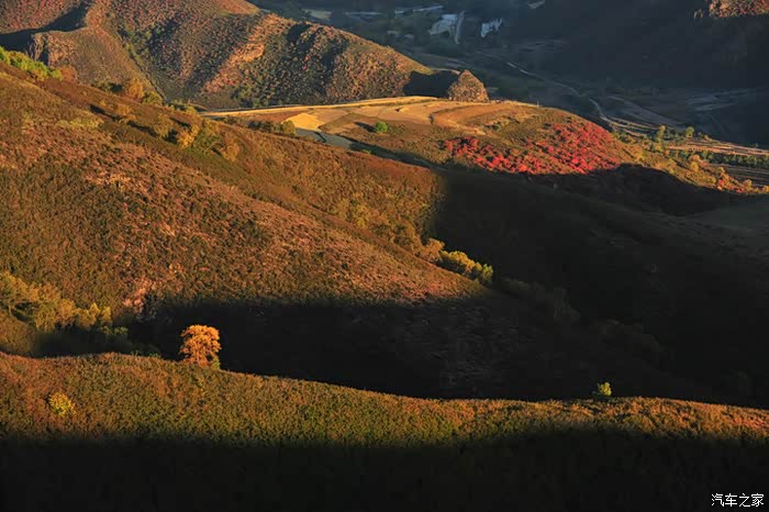 在独石口镇西山古长城边看夕阳迎日出,而后,第二天,驱车到冰山梁东麓的大沟谷赏金秋拍摄风景。10年来,这里美景都吸引着每年都会来此赏景拍摄。这里虽然贫穷一些,但保留着原野自然的山水和林木,有看不够走不完又排不完的古长城,还有有看不够又排不完的浓厚的乡村气息。田耕农作和清平而又负满祥和的村舍、朴实勤劳的乡民。还有那山坳里山坡上放牧的牛羊,田地里待收镰的片片金黄胡麻、莜麦一幅幅丰收景象。深秋时节的山峦间五彩缤纷绚丽多彩,这才是祥和万册的大美画卷!