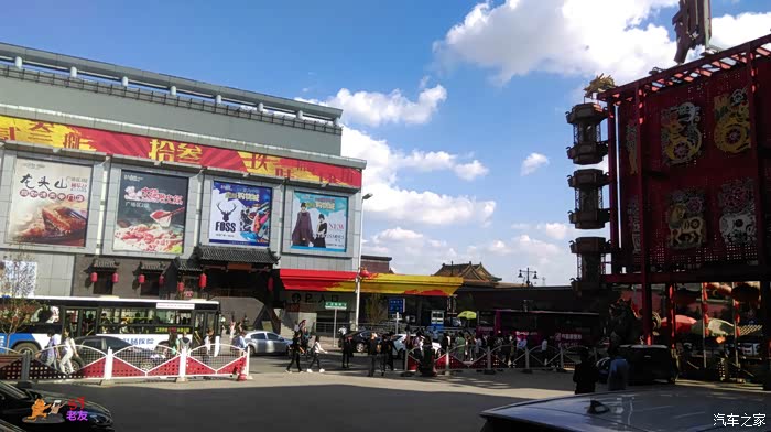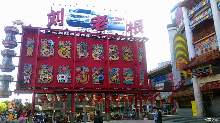 站在刘老根大舞台的门前,对面的兴隆大家庭近在咫尺,故宫的红墙和屋顶也清晰可见。