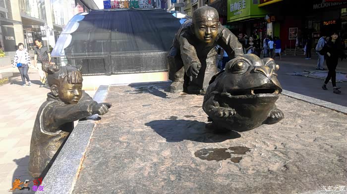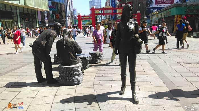 街口的雕塑,展现了过去和现在的街景。