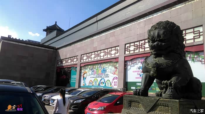 为了与南面的故宫景致相搭,兴隆大家庭的南侧为灰色城墙及亭式屋顶造型,门前还摆放着两尊石狮。