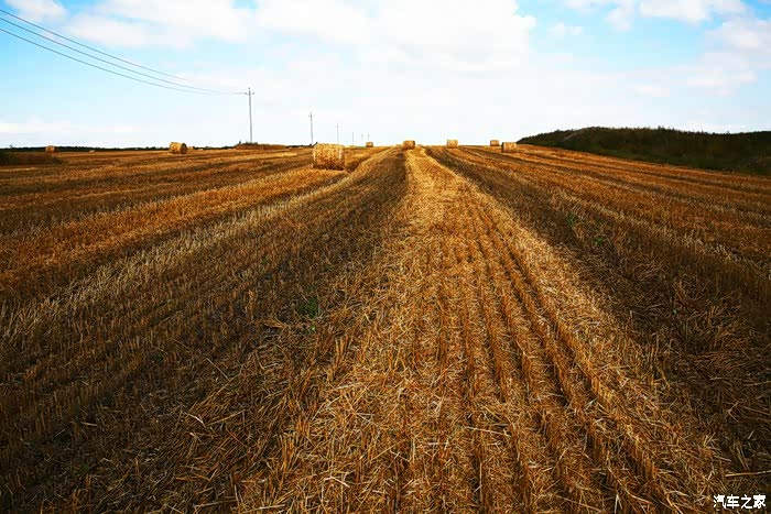 很多草场已经开始收割,据说这些呼伦贝尔优质的牧草是用来出口的。
