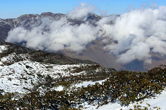 杜鹃花挺立在雪域,来年仍然竞相开放,有骨气。