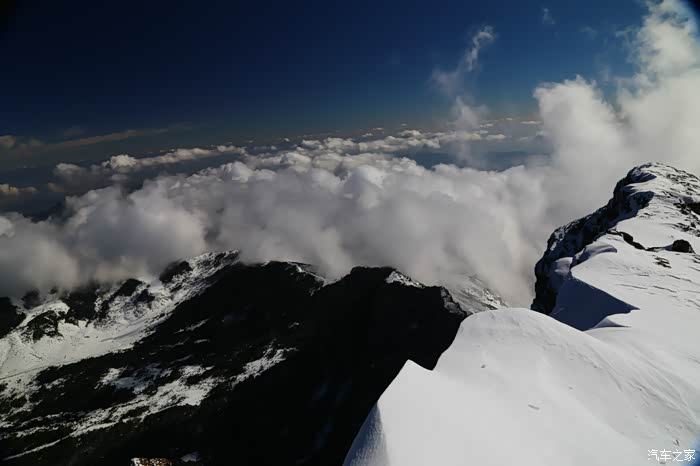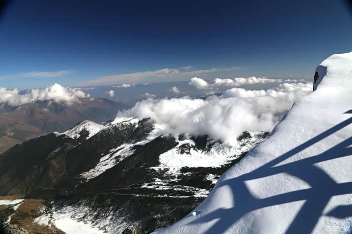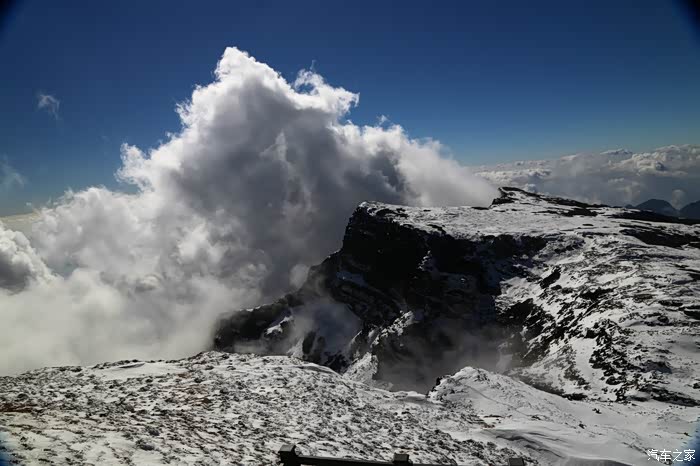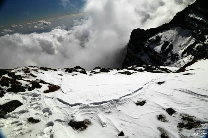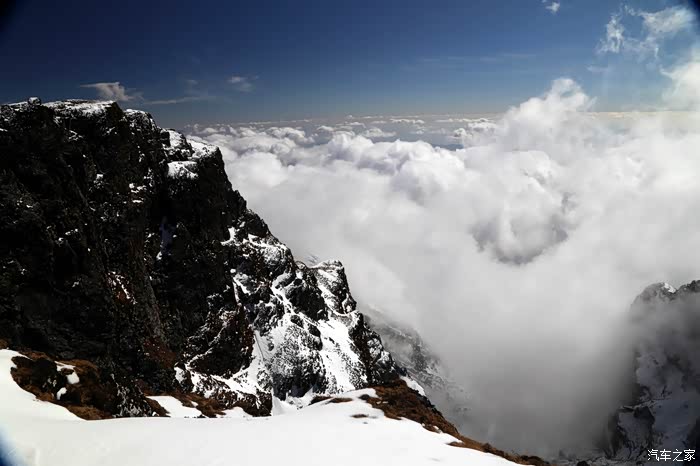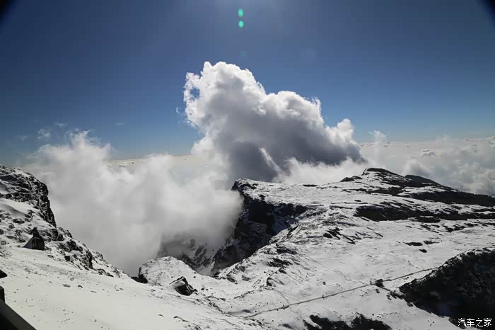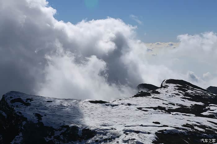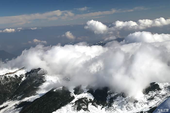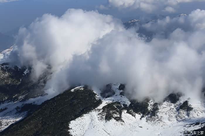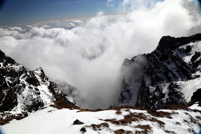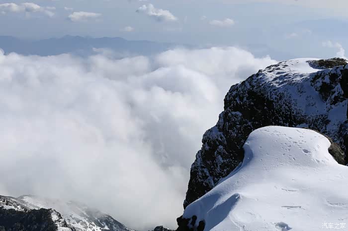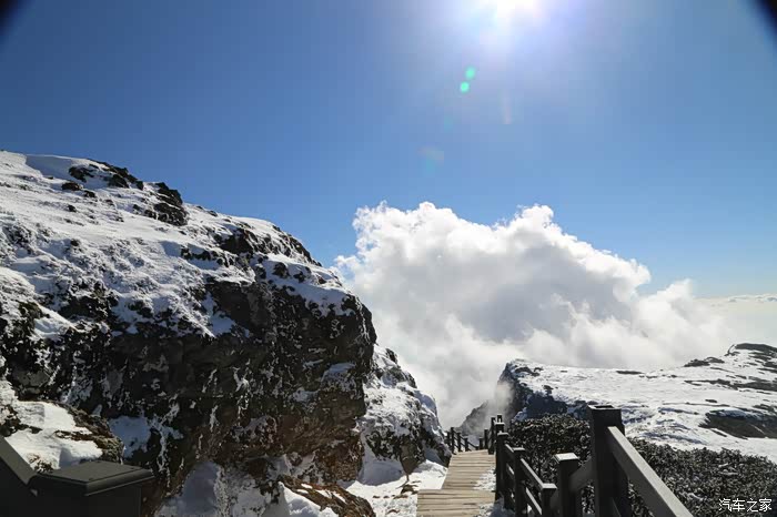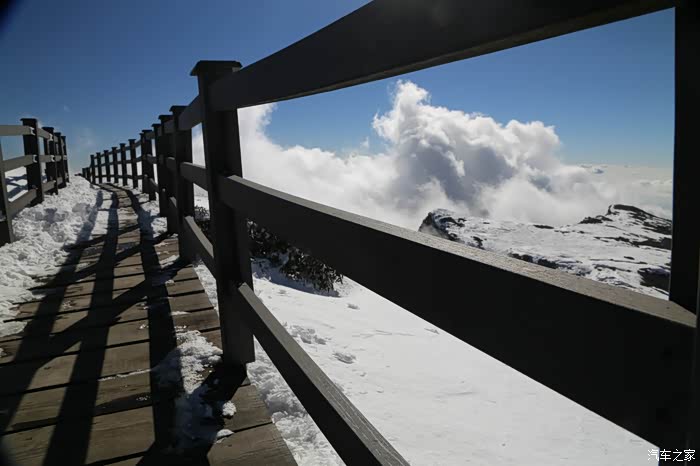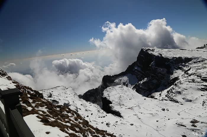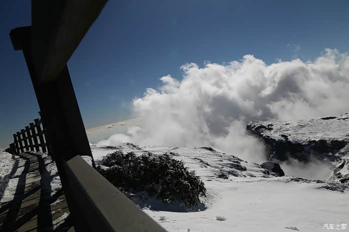 轿顶的侧面豁口,一片洁白的云雾,美丽壮观。