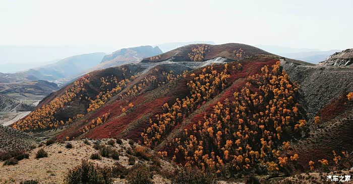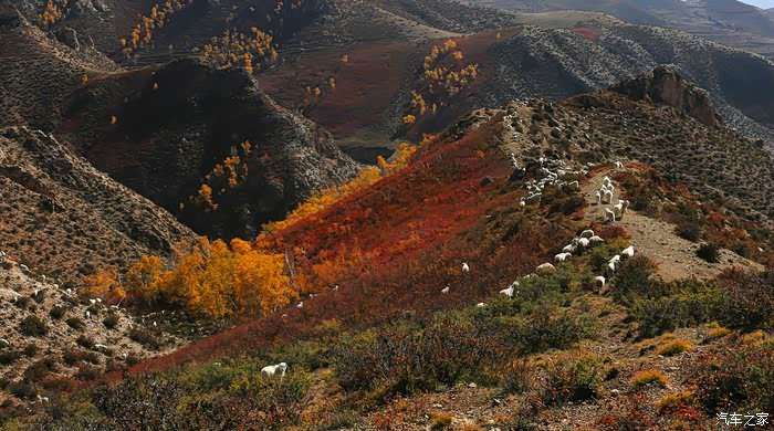 秋天色彩丰富,一片金黄,一片红色,好像给大地铺上了一层金黄色的地毯。