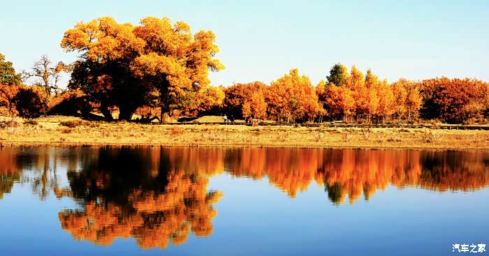 额济纳是胡杨林最集中的地方,秋风吹过,胡杨林就会由绿变黄,如同米亚罗的叶片,错落有致地重叠出一幅重彩的油画,让人心醉。