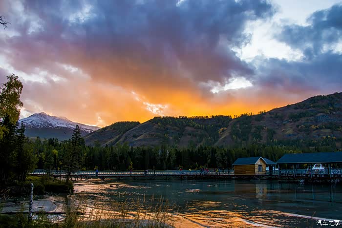 到达喀纳斯贾登峪入口处天色已晚,车子存在贾登峪停车场,乘景区游览车进入,当晚住在景区内,以便能赶上早晚摄影的好时光。