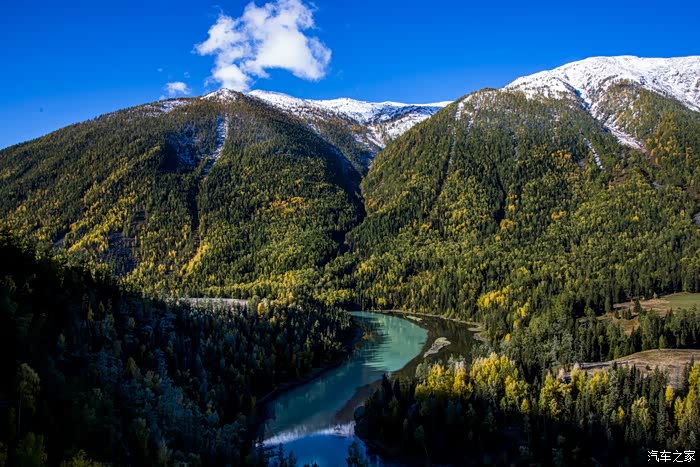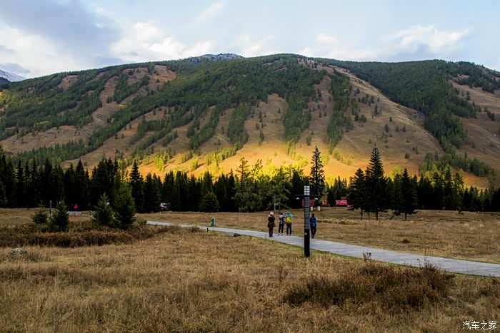 离白哈巴还有三十公里就不叫开车进入了,除非你有特权。因为从这里进入喀纳斯路程更远,我们在新疆购买的卡卡通旅游通票在这里也不管用,因此,我们只好返回布尔津再到贾登峪入口。(后来感觉到,景区不让自驾车进入还是应该的,景区内的旅游路窄,而且林子密、弯道多,能见度不好,坡度变化也大。尤其是景区的旅游摆渡车开的很猛很快,上坡转弯也不减速,让人提心吊胆。自驾车的司机不熟悉路况,因此为了安全起见,还是不要自己开车进景区。记住,开车出去玩,安全第一,不要自以为是的认为自己驾驶技术高超,永远不要把自己置于危险之中,否则,即使人没有受到伤害,只是车子坏了,你也是很麻烦的。)