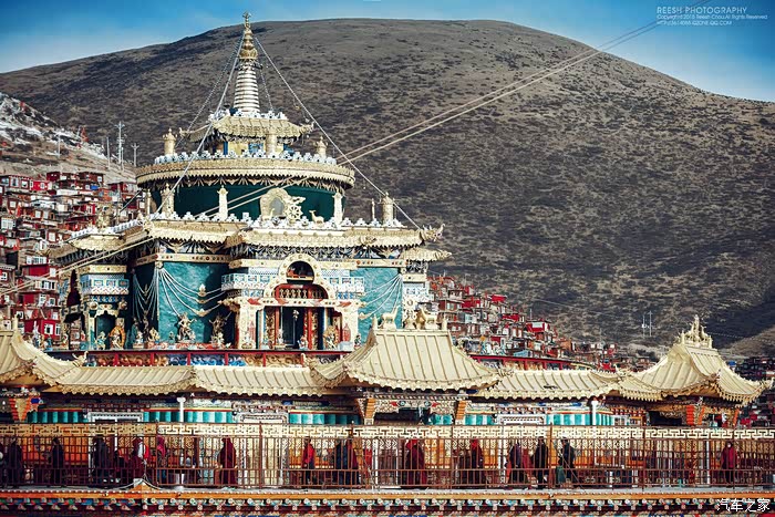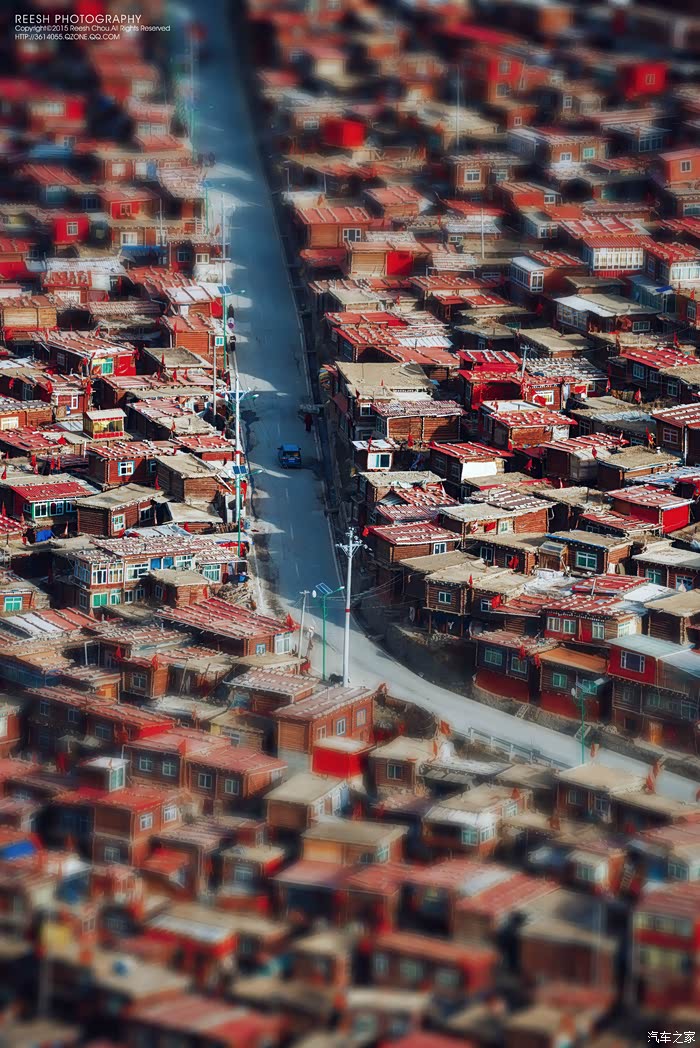 01 若论这张照片,差评,在行进中隔着车窗拍下这张,右边虚,中间还有反光,然而这是色达以具体的形态第一次出现在我的视线。