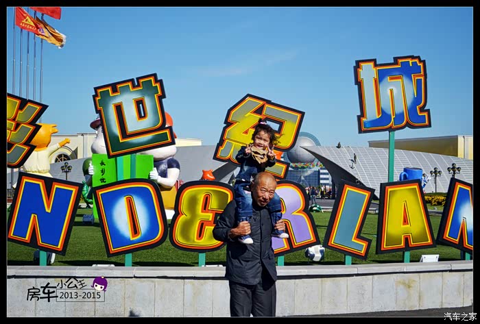 离开哈尔滨之前在淘宝网订好的门票,一米二以下的孩子不要票,我们5个大人一共950元(旅行社的网店,包中午一餐,是最便宜的购票方式)。 头天晚上光大已经把车开到长影世纪城门口了,停车费10元,一宿醒来已经8点,8点半在大门口国旗下集合,9点前第一批进门。